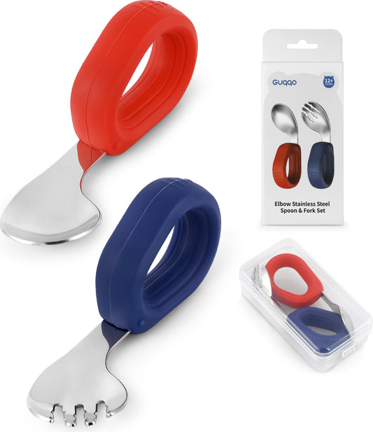 Bebek Çatal Kaşık Seti, Egik, 304 Paslanmaz Çelik, Silikon Saplı, Guqqo